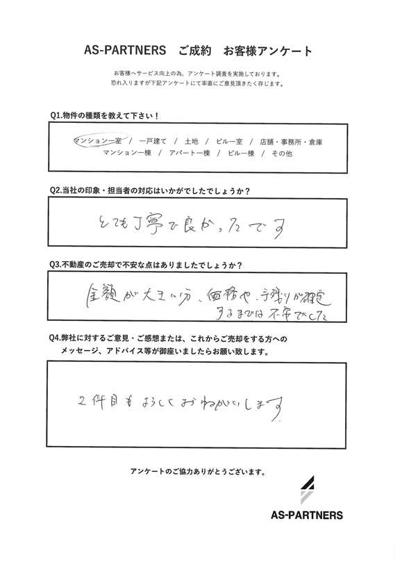 金額が大きい分、価格や、手残りが確定するまでは不安でした