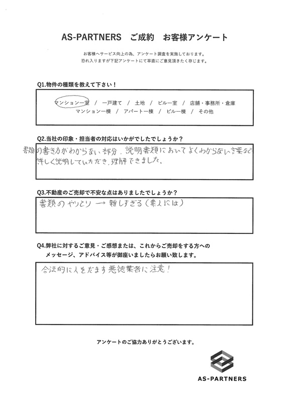 - 不動産のご売却で不安な点はありましたでしょうか?
