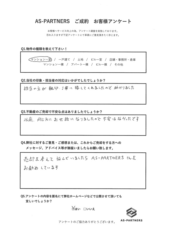 売却を考えて悩んでいましたらAS-PARTNERSさんをお勧めしています