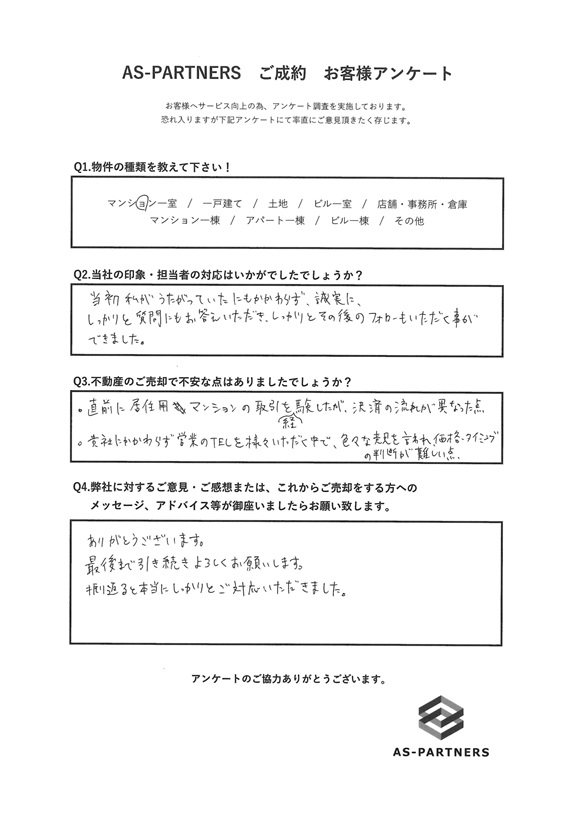 - 不動産のご売却で不安な点はありましたでしょうか?