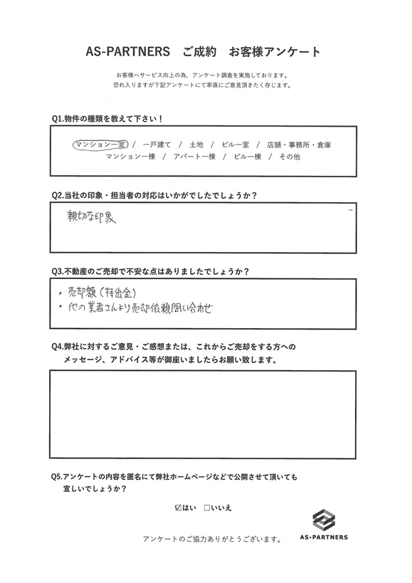 弊社に対するご意見・ご感想または、これからご売却をする方へのメッセージ、アドバイス等が御座いましたらお願い致します。