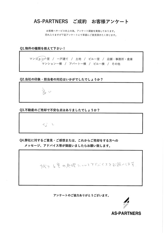 弊社に対するご意見・ご感想または、これからご売却をする方へのメッセージ、アドバイス等が御座いましたらお願い致します。