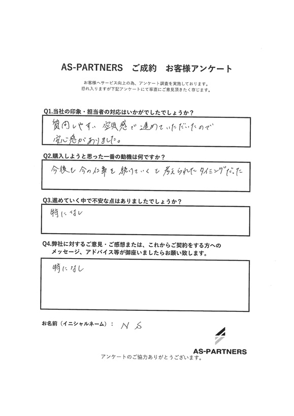 弊社に対するご意見・ご感想または、これからご契約をする方へのメッセージ、アドバイス等が御座いましたらお願い致します。