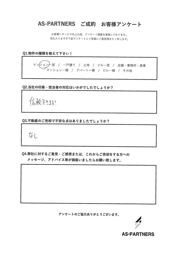弊社に対するご意見・ご感想または、これからご売却をする方へのメッセージ、アドバイス等が御座いましたらお願い致します。