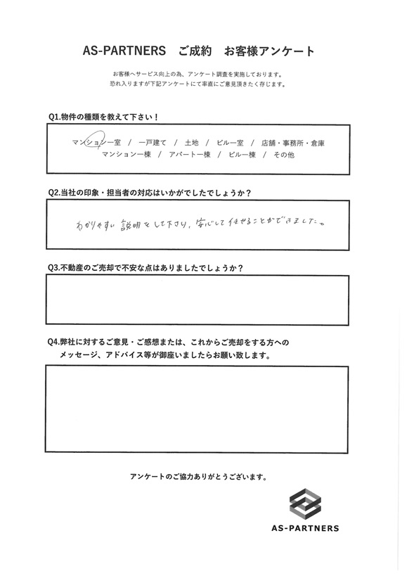 わかりやすい説明をして下さり、安心して任せることができました。